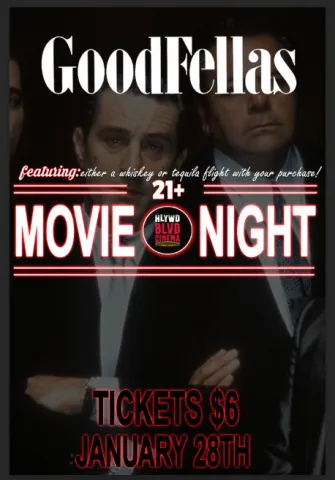 21+ Only Event- Ticket options include companion for $6, Whiskey Flight + $5 movie ticket for $20 & a Tequila Flight + $5 movie ticket for $20. All guests will be carded at the door.