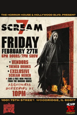 Hollywood Bloody Blvd Events and The Horror House invite you to a killer night celebrating the release of SCREAM 7