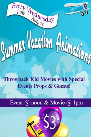 Every Wednesday June 4 – August 13 Blvd will be showing a throwback childrens film @1pm. Tickets are $3.