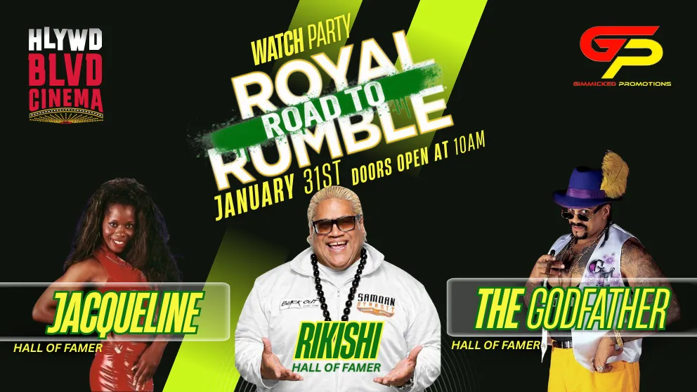 Featuring WWE Hall of Famers📅 January 31📍 Hollywood Blvd CinemaJoin us for a special Wrestling Watch Party featuring The Godfather, Rikishi, and Jacqu... Read more