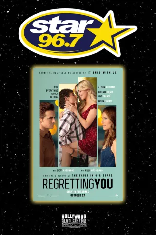 The Star 96.7 Book Club with team up with Hollywood Blvd to host a special movie screening of the new movie “Regretting You” on Thursday, 10/24/25! Doors will open at 6pm and feature patron tasting, giveaways etc. prior to the movie starting at 7pm! Star 96.7 Midday host and Book Club organizer, Jillian Bass will host this event! Must be 21+ to attend. Everyone will be carded at the door.